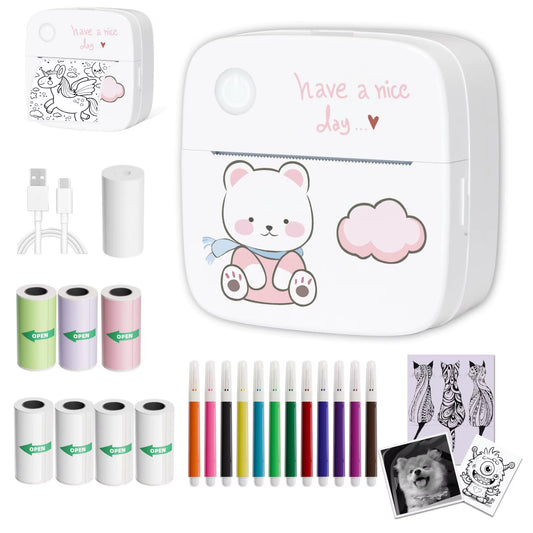 SLOK Thermal Mini Printer, Portable Inkless Bluetooth Sticker Maker with 10 Rolls Paper, Pink